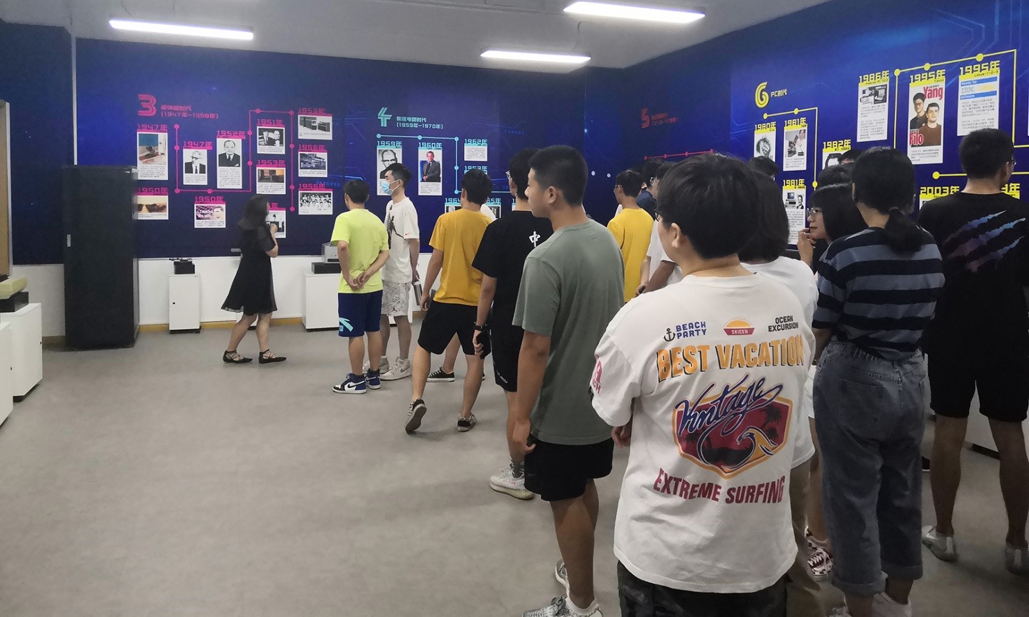 在智华信公司导引员的带领下同学们全面回顾了计算机的发展史,了解当前人工智能在不同领域的应用和场景,包括人脸识别、无人驾驶等方面。