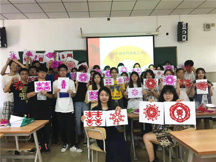 接下来是中华才艺培训课程,共分为三个部分。第一部分是京剧脸谱。京剧脸谱是具有民族特色的一种特殊的化妆方法。在课程开始前,王伊璞老师先给同学们介绍脸谱的来源以及特点,再通过与金木水火土匹配的颜色,让同学们了解在脸谱中每个颜色所代表人物的性格特点。有了老师的知识普及和学校提供的工具,同学们对脸谱的绘制手到擒来。第二部分是剪纸。剪纸是集观赏性、装饰性和应用广泛性于一体的精美手工工艺,极具收藏和实用价值。作为一种民族文化语言,它又是中国人展示自身文化品质的载体。在剪纸课上,高青老师先为同学们讲解了剪纸的艺术特点和重要性。发放完制作剪纸的材料后,老师从入门的囍字到立体的春字再到困难的动物图案,一步一步详细的传授着中华民族的剪纸艺术。第三部分是中国结。中国结是一种中国特有的手工编织工艺品,它身上所显示的情致与智慧正是中华古老文明中的一个侧面,代表着团结幸福平安。为了同学们可以更加直观地学习中国结编织的方法,学校为我们准备了五颜六色的编织绳,再由陈晨老师带领同学们走进中国结,领略中国结的艺术魅力。在老师手把手,耐心地教授下,同学们学会了凤尾结、玉米结的编织方法,并用所学知识,编织了手链、项链等精致的手工艺术品。