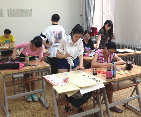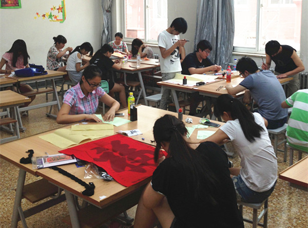 中华才艺技能训练也是同学们喜爱的一个部分。通过崔人元、王一诺老师的讲解与汉语教研室老师们的指导,同学们对中国书法及中国元素有了初步的了解,形成了感性认识,并自行组建了兴趣小组,如书法、绘画、剪纸、中国结、折纸、十字绣等小组。同学们的亲身实践,使具有鲜明中国文化标识,表现形式多样的中国元素更加鲜活,这极大地激发了同学们对中国文化的热爱及其创作潜能。