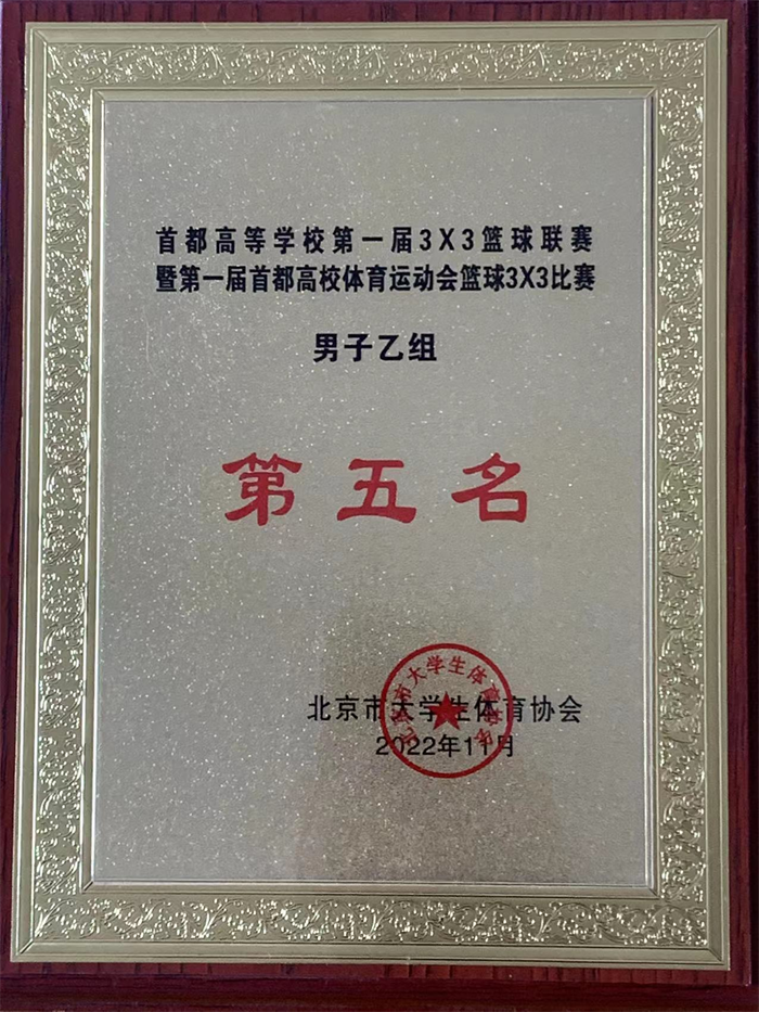 耿丹男子篮球队获得首都高校第一届体育运动大会3X3比赛第五名