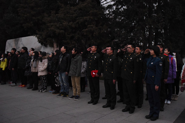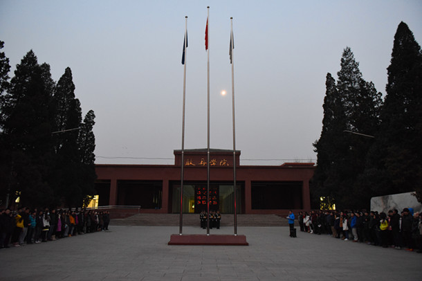 12月9日,冬日清晨的6点50,天才蒙蒙亮,校党委领导刘军书记、沈自友副书记,学工系统全体教师、学生党员、学生干部、青年师生代表等已经在东门国旗杆下列队集合好,纪念一二.九运动的升国旗仪式即将开始。7点整,随着国旗班同学洪亮的“升国旗仪式现在开始”,国旗班的同学们迈开整齐又坚毅的步伐,朝着国旗杆方向齐步走来,又听得一声亢奋的“正步走”,伴随着齐刷刷的正步声,还有护旗手闪亮的宝剑出鞘,仿佛大地都被震撼了,周围参观的同学老师们都凝神屏息,沉浸在庄严的仪式中。东方的天空渐渐地亮了起来,鲜艳的五星红旗在庄严的国歌中缓缓升起,每升高一点,感觉天空就更亮一分。是的,五星红旗是无数为国家奋斗牺牲的烈士们的鲜血染就的,正是他们的牺牲才换来祖国的辉煌的今天,朝阳缕缕便是烈士们的英魂所在。