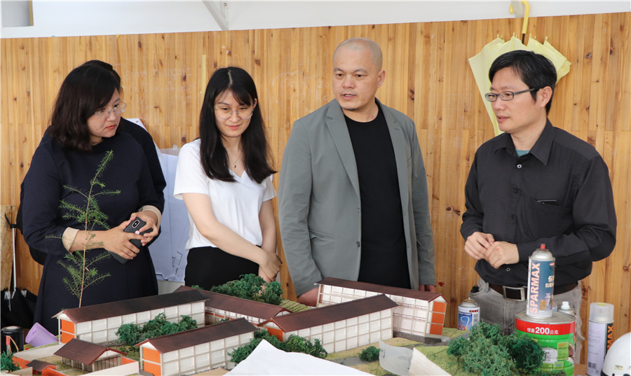 东海大学建筑系邱主任、景观系李主任分别介绍了两系的发展情况、教学计划、办学理念、教学成果,带领老师们参观教学环境、走进课堂和师生互动。建筑系一对一的“师徒制”精细化教学,以阶梯型建筑空间融通从大一到大四学生逐年提升引导的教学方法和理念,为耿丹国际设计学院办学提供了参考。