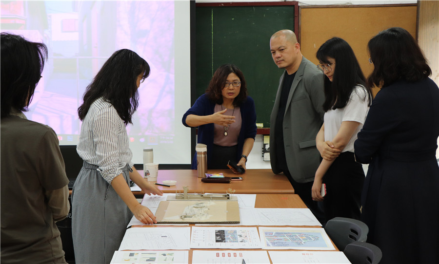 景观系李主任带领考察团走进了不同年级课堂,教师详细介绍课程的逻辑关系,并组织大四学生做了三个毕业设计方案的分享。李主任邀请耿丹国际设计学院参加全台湾的毕设联展,并期待能够达成更多项目的合作。