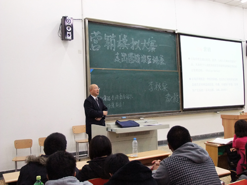 李秋实教授结合大量的案例和图像资料,向大家形象生动地展示了市场营销别具魅力的一面,强调市场营销学的研究与学习要“目中有人,以人为本”。并详细介绍了市场、营销以及市场营销三个概念及产生过程,着重强调顾客价值及市场营销要以顾客为导向的重要性,指出了市场营销常见的误区。李教授还结合我院的实际情况,以及应用型本科的目标定位,阐述了“亚前沿”思想就是要使学生系统地掌握专业理论知识,同时还要培养“有价值”的操作能力。