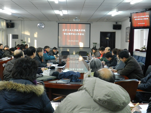 吴院长首先传达了北京市学位办关于独立学院申请学士学位授予权试点评估总结会议的精神,要求各专业及相关部门严格按照市学位办的工作要求,有针对性地完善材料填报及筹备工作。随后,综合办公室迟云平主任作了申请学士学位授予权的单位简况汇报;学院17个专业的责任教授分别就本专业的申报材料进行了汇报,从专业建设及培养方案、师资队伍、办学条件与实践教学、课程及教学管理、教学效果等方面,梳理了专业办学思路,展示了专业培养的特色及成果。汇报过程中,各专业责任教授及系、部负责人还就迎评工作中的具体问题及对本专业发展建设的思考,进行了深入的交流与探讨。