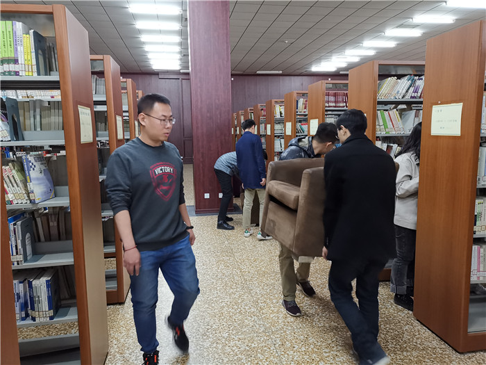播雷锋精神,做雷锋传人,学生事务办公室倡导文明风尚志愿服务,践行社会主义核心价值观。校园里,组织青年学生开展清扫卫生死角、推进垃圾分类,美化校园环境等清洁志愿服务,创造整洁优美的校园环境。图书馆里,女同学们帮助图书管理员将一册册书籍分类整理。男同学们将沙发、桌椅摆放在指定位置,摆放整齐。