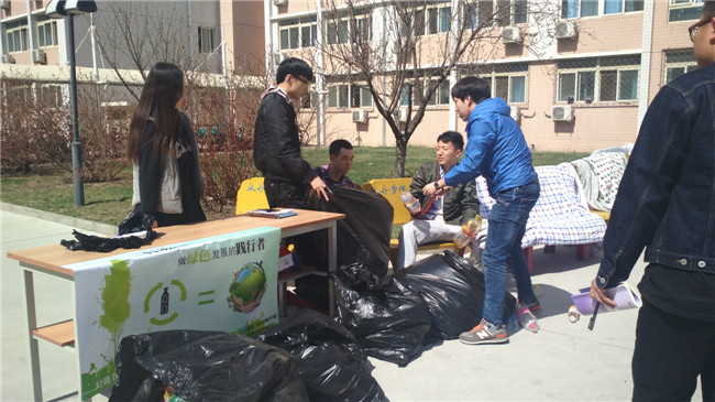 3月30日 中午策划部的学生干部刚在男女生学生公寓楼下布置好“绿色换购”活动现场,闻讯赶来的诸多宿舍舍友齐心协力地搬下一袋袋瓶子和纸箱,并在工作人员的指引下做好物品登记。在四个多小时的时间里,陆续又有很多同学通过朋友圈纷纷加入活动中,在工作人员的团结努力和齐心协作下,活动圆满结束,最终矿泉水瓶收集5000多个,看到码放的整整齐齐的纸箱等物品,大家都很开心和满足。
