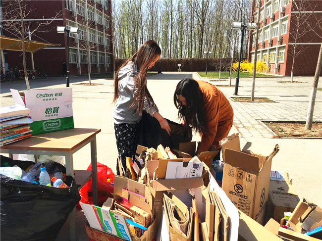 宿舍长期堆放大量塑料瓶子和废旧纸箱,不但影响宿舍的整洁卫生,而且存在一定的安全隐患。为了宿舍社区的绿色发展和环保建设,学生自治管理委员会策划部的学生干部们每月开展 “绿色换购”活动,唤起广大同学的环保意识及公益爱心,让文明成为一种习惯,让“垃圾下楼・文明上楼”成为一种风尚。