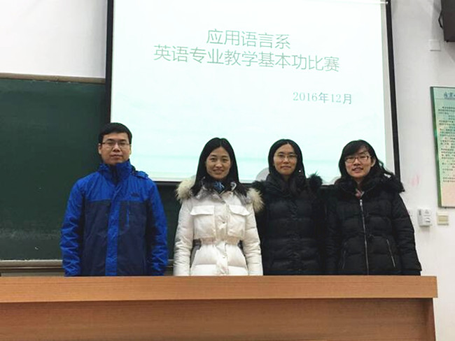 为加强应用语言系英语专业教师队伍建设,加快青年教师成长,激发教师对教学工作的责任感与事业心,提升教学质量与教学效果,应用语言系英语专业于12月21日在B104教室举办了应用语言系英语专业教学基本功比赛。英语专业教研室负责人芮艳芳、赵靖娜老师以及英语专业资深教师余达、王秀红老师担任了本次比赛的评委。