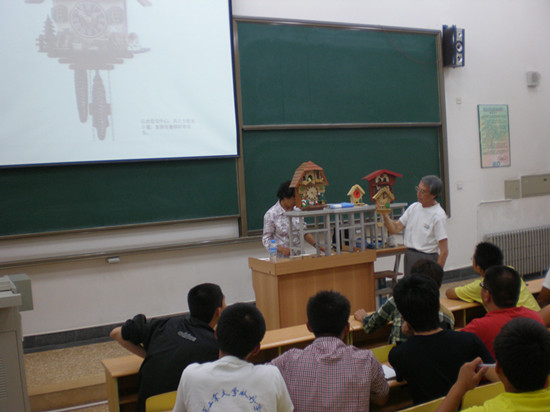 马教授在讲座中从艺术风格的角度,用生动的语言,形象的图片,介绍了欧洲流派的艺术木锺l、亚洲流派的艺术木锺l、中国式的艺术木锺l的发展现状;从消费的时尚型角度,讲解了艺术木锺l是实用与艺术的完美结合,道出了艺术木锺l的发展与商机;通过实物剖析介绍了艺术木锺l原理、结构、造型与色彩。讲座结束后,马教授与同学们进行了精彩的互动交流,并鼓励同学们多方面发展,欢迎同学们随时进行交流。