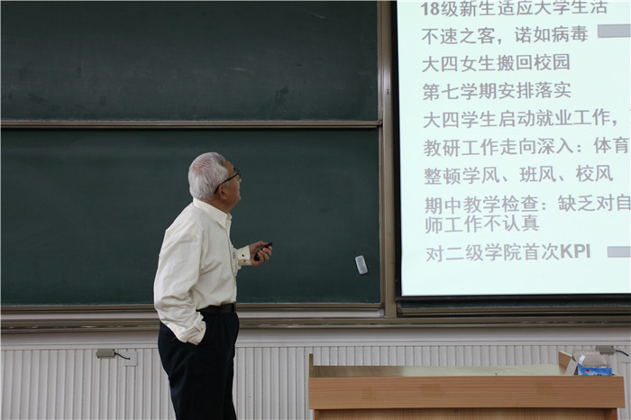 为了解各二级学院“以生为本、追求卓越、立德树人、开放性国际化办学”的综合教学改革落实情况,依据学校教学工作安排,学校开展了全校期中教学检查工作。根据期中教学检查反映出来的问题,学校于11月7日在BJ03召开了2018-2019学年第一学期期中教学检查全体教师大会,丁晓良常务副院长、徐胜云教学副院长、刘林副院长、李永军副院长出席会议,各行政部门、各二级学院院长以及全体教职工参加了本次大会。