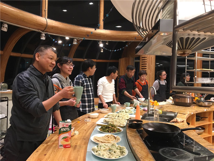 本次餐会以趣味包饺子为主,大家分工明确,揉面、分剂儿、擀面、包饺子等井然有序,有的老师还是第一次尝试包饺子。老师们还纷纷展示厨艺,芫香排骨、卤凤爪、蒜苗炒腊肉、蒜泥茄子、山药羊肉汤、蔬菜沙拉,一道道自制美食被摆上餐桌。
