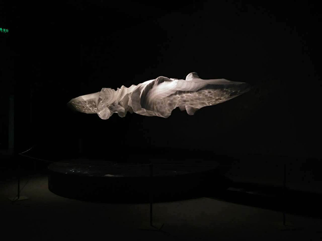 此次徐升老师参展的作品有《隐力》、《撞击》。创作材料由金属、陶瓷、到作品《隐力》保丽龙的高分子材料不断延伸。作品《撞击》质感光洁,线条顺畅,点缀形态各异鹅卵石,这是徐升老师继2012年“千层浪”系列作品后,新创作的“几何与自然”系列作品的突出特点。