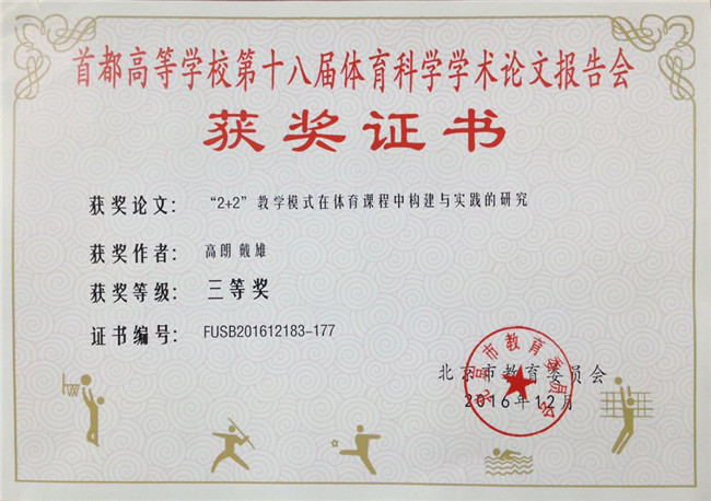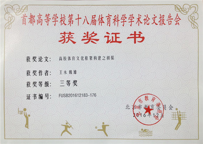 经过积极探索和研究,我院体育与艺术教学部教师本着深入探讨高校体育改革与发展中的重大理论问题和实践问题,和以学生健康发展为本,总结历史经验、推进现实工作的研究宗旨,投送论文3篇,戴雄老师、王永老师、高朗老师的论文分别获得三等奖,受到北京市大学生体育协会领导和专家的一致好评。