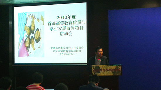 为掌握学生大学四年发展数据,更好的把握当代大学生发展动向,提升学生管理事务工作决策的科学性,我院学生处参加了北京市教育工作委员会开展的“首都高等教育质量与学生发展状况监测项目”的研究工作。近日,“2013年首都高等教育质量与学生发展状况监测项目启动会”在北京大学教育学院举办,北京市教育工作委员会宣教处副处长寇红江出席会议并发言,项目核心成员、北京大学教育学院鲍威、