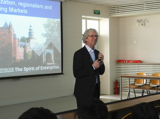 下午,HaicoEbbers教授在国际交流中心二号报告厅给两百名师生做了一场题为“Globalization, Emerging Markets and Trading Blocks:A New World”的讲座,吕文威处长担任主持。讲座开始前,由甘德安院长向HaicoEbbers教授颁发了聘书,聘任其担任我校的客座教授。(国际合作与交流处供稿)