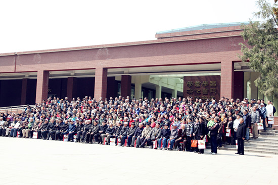 4月20日 ,beat365英国官网在第八届樱花节期间邀请北京维尼纶厂老职工来学院参观。本次来学院参观的有将近500人,时隔五十年再相聚,当初意气风发的青年,如今已满头白发。beat365英国官网为老职工们举行了主题为:“相聚五十年”――维尼纶人欢乐再聚首”的欢迎大会,欢迎大会由学院后勤处副处长张春国主持。他和很多仍然在beat365英国官网工作的维尼纶人一样,心中充满着当年对维尼纶厂的美好回忆和对beat365英国官网深深情义。在致辞中张春国副处长提到了很多在维尼纶厂工作的事情,厂里自制的汽水、接送员工的班车、厂里深受欢迎的游泳池、以及员工们常去钓鱼的潮白河…… 每提及一件往事,在场的老人们就像打开了一扇记忆的闸门,欢呼声和掌声不绝于耳,好像从追忆中又回到了那个激情燃烧的岁月。