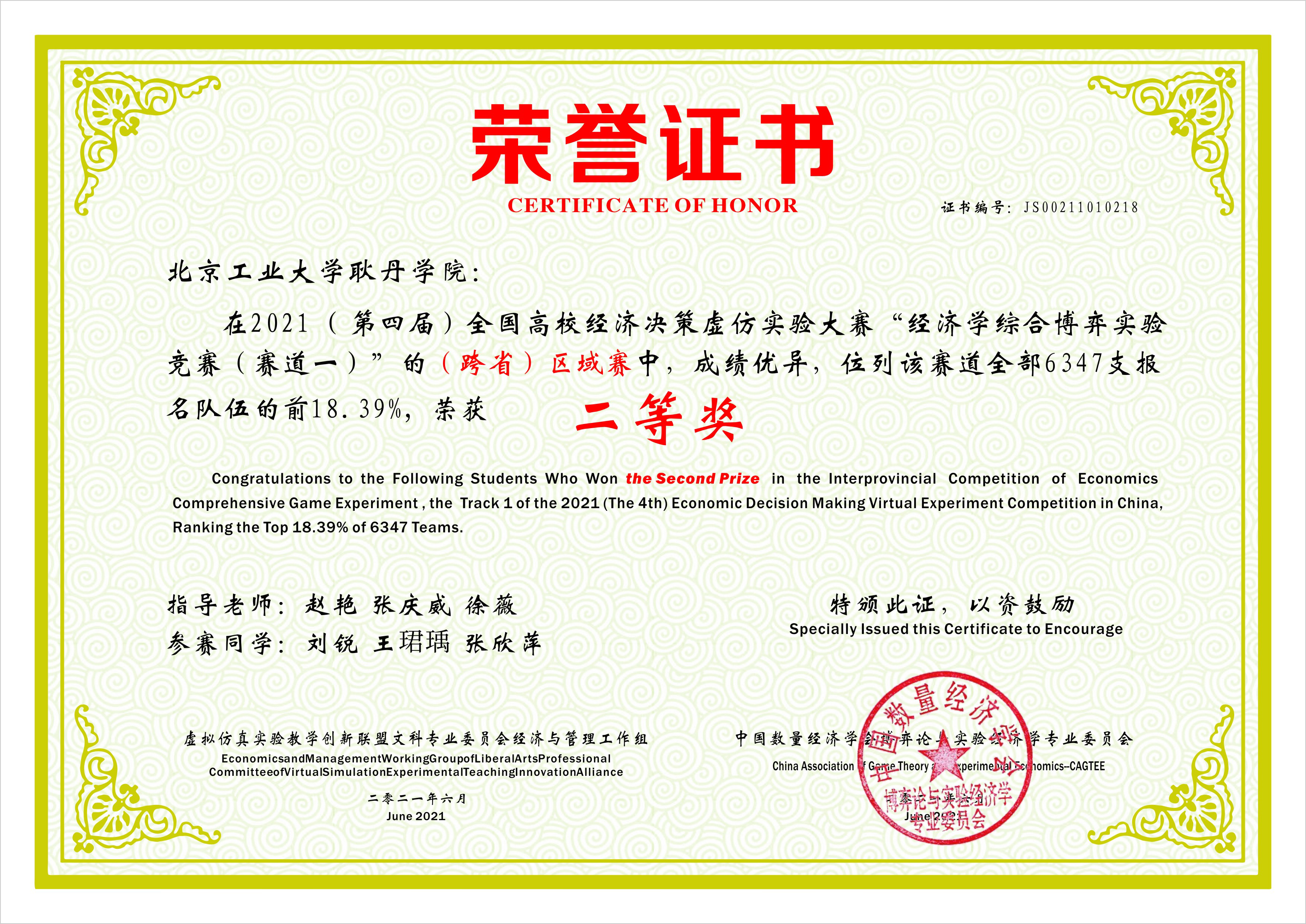 国贸专业学生参加2021年(第四届)全国高校经济决策虚仿实验大赛并荣获佳绩