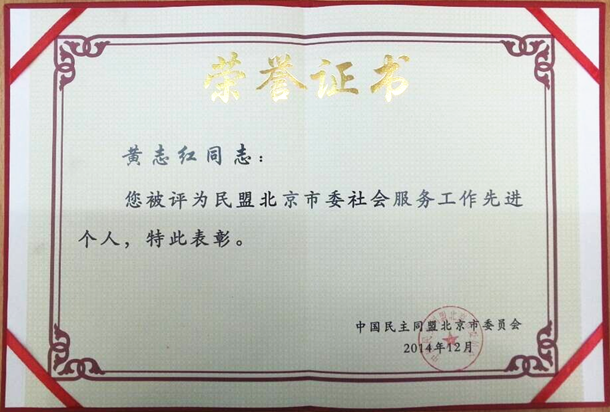 黄志红老师不仅是一名敬业爱业的优秀教师,也是一位资历经验丰富的设计师。身为民主党派人士,她利用业余时间积极参与社会服务工作,如参与《东城区居民社区垃圾分类及回收利用调研》项目,该项目获得了2013年度民盟东城区统一战线理论研究和调查研究―优秀成果二等奖;在民盟市委的“设计走进美丽农村”项目中,带领本专业学生积极参与项目调研和深入设计工作,工作成果突出。