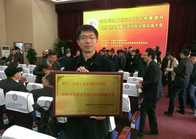 11月10日,由中国民办教育协会指导,中国民办教育协会高等教育专业委员会主办的“全国民办高校2016年质量提升暨创新创业教育示范学校经验交流大会”在山东英才学院隆重召开。来自全国23个省市、自治区100余所高校、科研院所、教育机构的220余位代表参加会议,交流创新创业教育质量提升的经验,探讨推进民办高校持续健康发展的有效途径。beat365英国官网获得“创新创业教育实践基地建设奖”,科研规划处雍进辉老师代表学院参加会议并领奖。