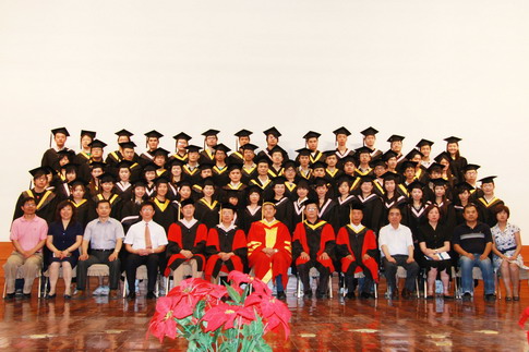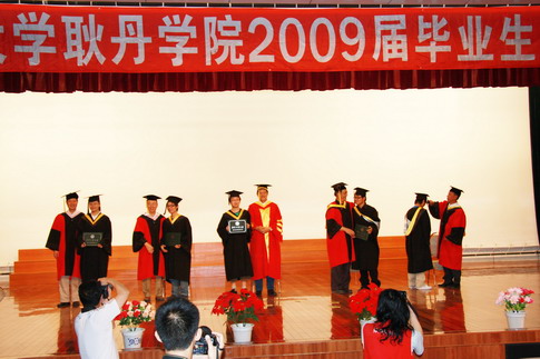 林炎志、计慕然、刘存、马振铎、翟苏民五位教授在激昂的进行曲中为毕业生颁发了学位证书。林炎志院长还为优秀毕业生颁发荣誉证书。(消息来源:教务处)