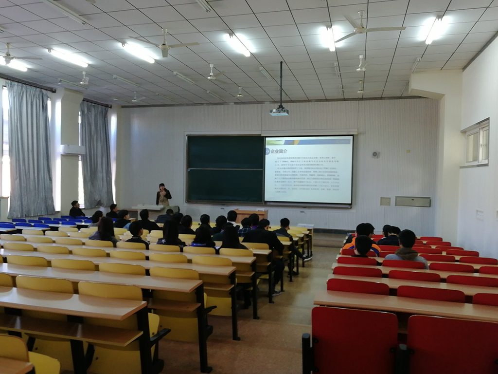 11月1日招聘会上,金和水务的人力资源部门领导,通过播放宣传片、PPT展示和面对面交流等方式向同学们介绍公司的概况、职业发展方向、人员需求等。