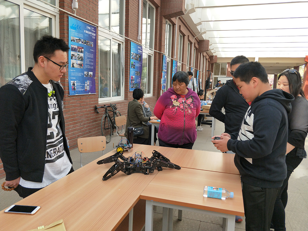 这次成果展机械设计制造及其自动化专业展示了学生研发的机器人、无人机、3D打印机等设备,其中由3D打印机打印出的作品受到了访客的青睐,可以亲自体验的无人机更是吸引了众多的游人和科技爱好者的参与;工业设计专业手工打造的小木马和独具匠心的樱花节纪念徽章,引来了无数的小朋友和家长们的好评;电子信息工程专业展出了六足机器人,智能加湿器和音乐机械臂;通信工程专业展出了智能机器人,WIFI视频履带车,寻迹小车等;计算机科学与技术专业展示了师生们历年来获得的奖励和学生开发的各类软件;数字媒体技术专业利用大屏幕播放专业精心制作的光影视频;物联网专业则展示了学生开发的芯片;工程管理专业展出了近几年获得的奖杯、学生制作的建筑工程模型并且使用大屏幕展示BIM设计作品;城乡规划专业布置了丰富多样的展板和投影来展示专业特色;建筑学专业展出了学生们制作的各种建筑模型和建筑设计图。