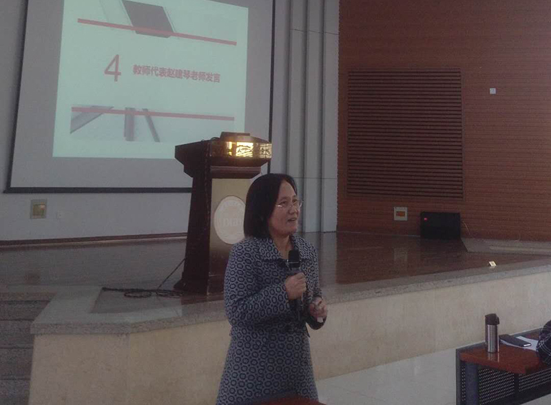 随后,工学院教师党支部书记赵建琴老师代表全体教师发言。她分享了自己作为带队教师组织学生参加德国创业实践项目的经历,学生的优秀表现和举办方的认可让她更加相信,我们的学生都非常有潜质,只要认真学习、钻研专业知识就可以有更多的发展机会和更大的发展平台。