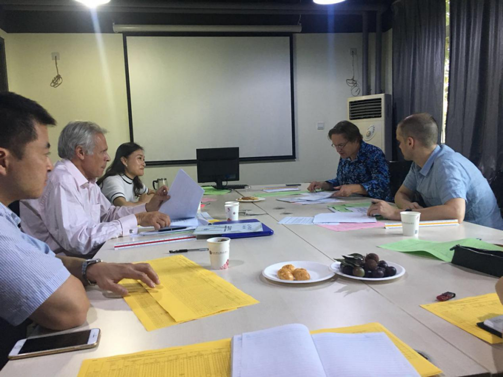外考官到来主要包括3项工作,第一是对城乡规划专业的教学文件进行浏览和审查,不仅包含每一门专业课的过程性评价和最终考核,还包括要从理论和实践的角度对专业课提出建设性意见和建议,以便教学工作因时制宜、因地制宜地进行调整。第二项是与城乡规划专业教师座谈,城乡规划专业负责人蒋天洁老师对该专业一整学年的基本情况做了介绍,她指出本专业由DIT外教与BGD专业教师和英语老师共同完成,学生所学模块内容与DIT基本相同,只是考核形式略有不同。并欢迎两位外考官对本专业进检查与指正,两位外考官也对自己的身份与即将展开的课程审核工作进行了详细的介绍。第三项是,两位外考官与本专业学生进行了交谈,此次交谈是在没有任何领导与任课教师的情况下进行的,以便于学生可以在不受干扰的条件下发表自己的见解以及提出自己的意见。接下来两位外考官对学生成绩,考核内容以及每部分所占比例,学生作业完成情况和每门课程是否完全达到教学目标做了详细的检查,该项工作是由两位外考官在封闭状态下完成,期间没有任何他人参与。该项工作完成之后,两位外考官与专业负责人以及任课教师针对检查过程中存在的问题以及他们所总结的意见和建议与大家分享。