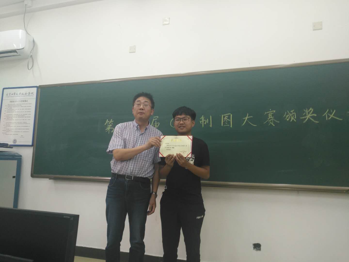 赛后经评委评分,评出一等奖一名:王凯同学,二等奖两名:陆鹏飞和孙彧扬同学,三等奖三名:林洋、安明琪、何继龙同学。颁奖仪式上特邀请了工学院王家松院长为获奖同学颁奖,极大的鼓舞了同学们的学习热情。第一届CAD制图大赛圆满结束。