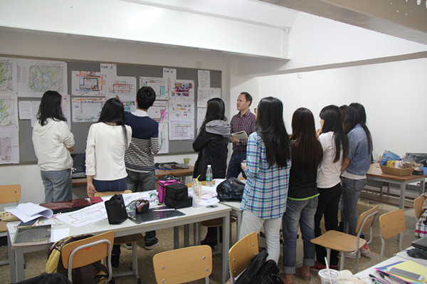 在整个workshop教学过程中,Conor教授结合实际案例从功能、科学、可持续发展及审美等方面讲述了城市设计规划的流程;实践过程中将学生分为3个团队,最终形成了较有探索性的3个设计方案并进行了生动活泼的总结答辩,师生都感觉受益匪浅。