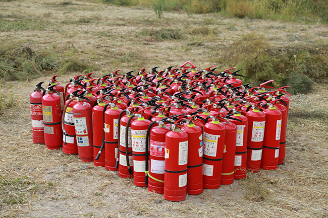 8月28日下午,军训团在基地组织2015级新生进行消防演练。14点30分,全体学生列队集结完毕。基地领导首先为大家讲解消防相关知识以及灭火器的使用及注意事项。随后,各连队教官亲自演习灭火过程。15点整,随着教官的一声哨响,消防演练正式开始。同学们在教官和老师的指导下依次进行灭火演练。现场气氛热烈,火起火灭,反复操练后,同学们动作越来越熟练。16点30分,火全部被扑灭,本次消防演练结束,同学们在教官和随训教师的组织下回到营地。