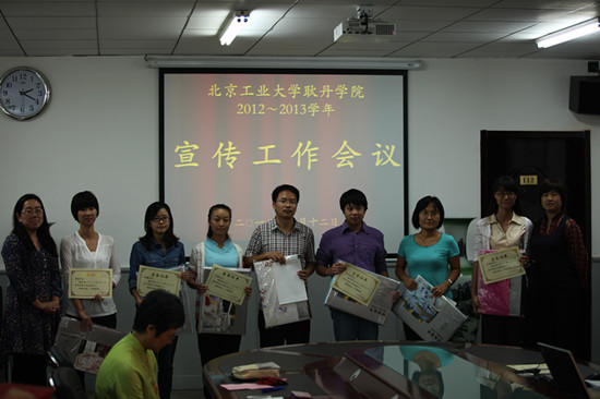 首先党总支宣传委员雍进辉同志作上一学年宣传工作总结。党总支副书记郭颖同志宣读了“关于表彰2011-2012学年宣传工作先进集体和先进个人的决定”,并对先进集体和个人进行颁奖。