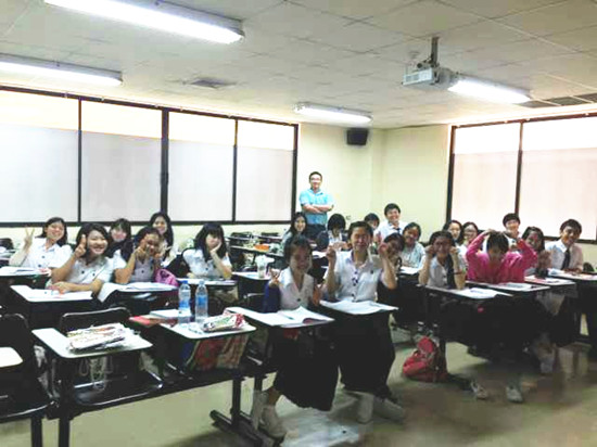 翟聿良:这次我工作的学校是泰国曼谷的一所大学,位于曼谷市吞武里地区,距离市中心3公里左右。我在这所学校教的科目有:古代汉语、旅游汉语、汉语读写、汉语基础以及汉语会话。每周一共有15节课,每节课50分钟。至于需要掌握的技能,首先汉语知识要有足够的积累,比如说在教中文专业古代汉语和汉语读写的时候,需要讲许多词句背后的寓意以及来源,并且可以用形象的方式给学生们解释。还有就是要有中间语的辅助,比如说简单的泰语和英语,如果泰语水平可以解释得通最好,如果不行的话可以选择用英语翻译,泰国的英语教育普及很早,虽然水平参差不齐但大学生都有英语基础,上课沟通不是问题。另外泰国的学生很喜欢各种各样的活动,适当准备一些活动带领学生们一起做,既可以营造一个轻松活跃的气氛,也可以让学生们在活动中记住一些知识。