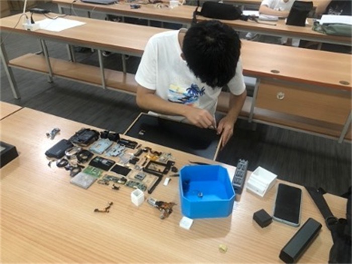 产品结构设计课程因自身性质与特点,教师对学时章节的安排进行创新调整,将不同理论知识与项目案例结合,增强学生学习兴趣的同时,适当安排相应的专题训练供学生拓展学习。例如:拓展训练课题设计 “手机结构设计及工作原理分析”,要求拆卸不同品牌型号的手机,分析电路组成,设计统筹画出原理示意图并进行收纳展示,通过拆装训练,学生不仅认识了基本元器件并掌握其电路基本知识,在过程中锻炼动手能力的同时还充分了解其设计原理,为后续设计奠定基础。