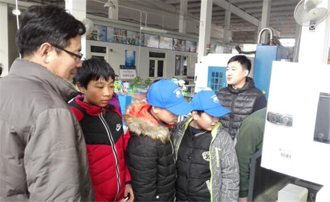 在参观金工实习车间