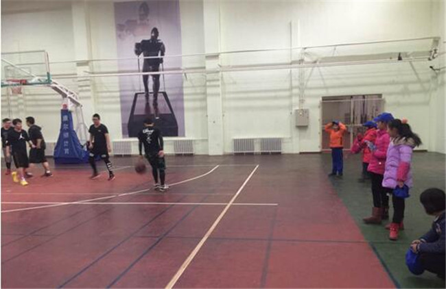 在篮球馆看大哥哥们打篮球