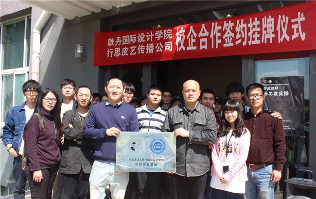 4月21日,国际设计学院与北京行思皮艺传播公司举行校企合作挂牌签约仪式, 学院领导、企业嘉宾及学生参加。