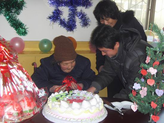 11月22日上午,机械工程系团总支学生会组织学生去顺义区北小营镇老年公寓,为94岁孤寡老人任刘氏奶奶举办了一个温馨难忘的生日聚会。