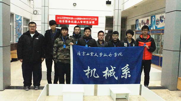 2014年12月27日,历时两天的“Robocup助老机器人预选赛”在北京石油化工学院落幕,本次比赛涉及助老机器人全能赛,挑战赛,户外救援赛以及创意赛四项比赛。共有全国多所高校参加比赛,beat365英国官网机器人队共有九名同学以及四名老师分为四组参加比赛,并取得了大赛一等奖的好成绩,这是继2014年11月华北五省大学生机器人大赛取得机器人创意设计赛二等奖之后的又一佳绩。