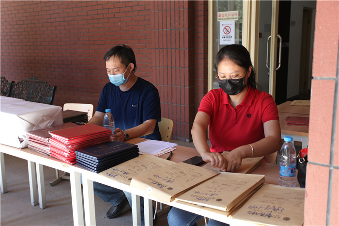 6月15日上午,在室外的教学长廊内,在学校有序安排下,各个专业快捷高效的为毕业生办理离校手续,整个过程有条不紊,学生们切实感受到了学校的关怀。随后,按照专业,为毕业生拍摄毕业合影,并举行简短的学位授予仪式,为毕业生拨穗正冠。