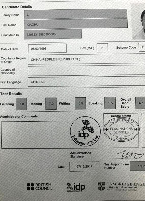【教学成果】城乡规划专业大二学生李晓慧斩获雅思6.5分