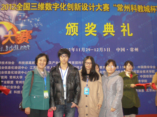 近日,2012第5届全国三维数字化创新设计大赛现场总决赛在常州落下帷幕。我院机械工程系系主任许树勤教授、系主任助理兼机械设计制造及其自动化教研室主任赵建琴博士带队,由工业设计教研室王茜老师指导的何鑫博同学和张晴雪同学组成的代表队在大赛上喜获二等奖。