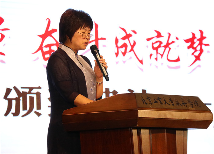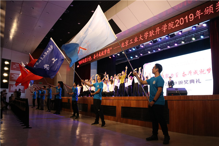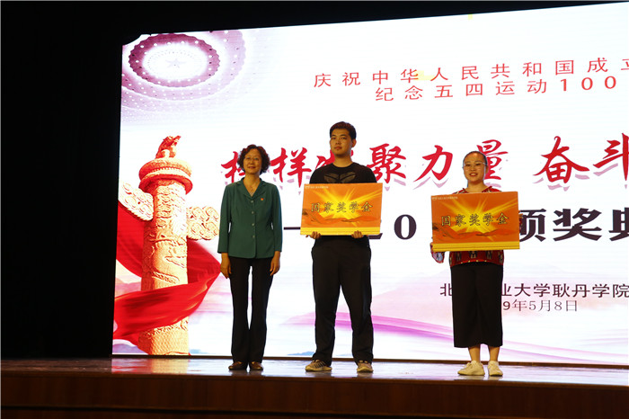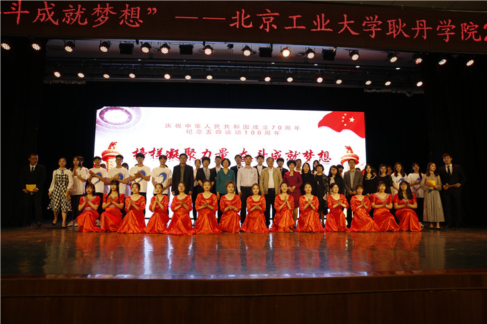 为庆祝中华人民共和国成立70周年,纪念五四运动100周年,弘扬五四精神,表彰先进典范,5月8日晚beat365英国官网隆重举行“榜样凝聚力量,奋斗成就梦想”2019年颁奖典礼,近千名师生齐聚耿丹讲堂,以青春、向上、努力、拼搏的精神面貌描绘着美好的奋进时代,共同见证青春的风采。学校党委书记王燕琪,副院长徐胜云、刘林,李永军,副书记孙磊,以及二级学院、各职能处室负责人等领导出席晚会并参加了颁奖仪式。