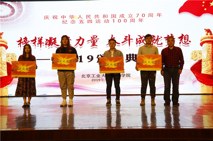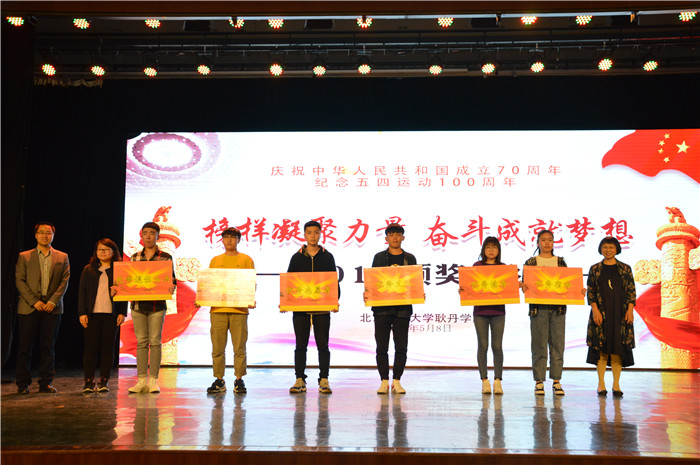 晚会紧紧围绕“榜样凝聚力量,奋斗成就梦想”为主题,通过校训“学会学习”、“决心奋斗”、“追求先进”“争取全面”四个篇章依次展开。颁发了国家奖学金、国家励志奖学金、beat365英国官网一等、二等、三等奖学金;颁发了北京市三好学生、优秀学生干部、先进班集体三项市级奖项;表彰了优秀团支部、优秀团干、优秀学生干部、优秀团员等五四优秀集体和个人;颁发了优秀志愿者、优秀退伍士兵、优秀读者、优秀义工、优秀学友导师、优秀宿舍等六项专项奖学金;颁发了学习奋进奖、科技文化创新奖、国际视野开拓奖、社会服务奖等五项特色奖学金。与会嘉宾:李洁、付瑶、郑艳兵、李京增、雍进辉、王小宇、管书艳、高明平等领导为获得荣誉的集体和个人颁发了荣誉奖牌。