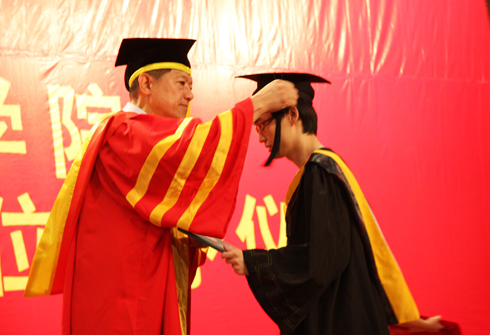 最后,林院长及教授们为每一位毕业生们毕业证书和授予学位,并与他们合影留念、寄语期望。当流苏拨过的那一瞬间,辛勤与收获、青春与梦想荡漾在每一位学子的脸上。学院特地为每一位学生与导师拍照留念。