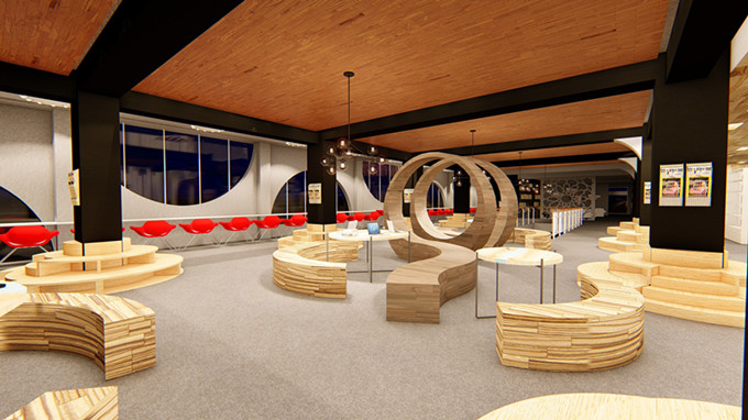 本次结课展课题为广州某高校图书馆空间改造设计,为真实的企业案例。在设计前期,学生首先对项目所在地进行了详细的调研,从学校特色、受众人群、所需功能、空间尺度、藏书要求等方面进行大量分析,再通过对原有空间分析,综合甲方所提出的藏书、书吧、借还书、文化沙龙、教材发放、馆员办公、教师阅览等空间需求,确立了自己的设计创意,通过手绘、平面布局、三维建模、渲染、视频剪辑等手段进行设计呈现,完成切实可行的设计方案。