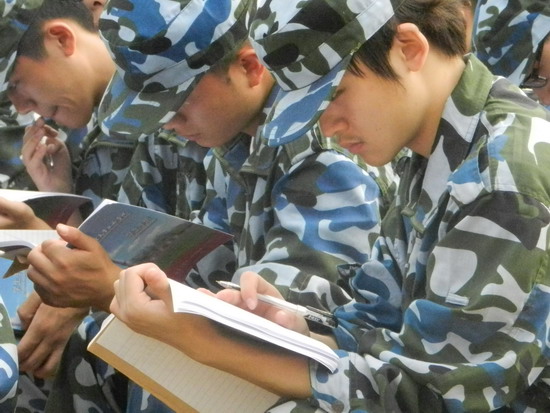 8月31日,12级新生军训按照计划如火如荼的开展。在结束基本训练科目之后,方队及分列式训练成为今天训练的主题。教官和学生的共同努力让今天的训练卓有成效。在训练时,辅导员们亲临训练场,关心学生情况。学生内务评比也于今天揭晓成绩,女生四连32排,男生2连13排,受到表彰。训练场外,由见习生组成的志愿“飞虎队”穿梭往来,一瓶温暖的水,一张纸巾,传递着同学间浓浓的友情。经过四天的训练,同学们已经越来越像军人,更为难能可贵的是,短短四天的时间,同学之间建立起非常深厚的感情,互相帮助和鼓励,同时也站在了一个更高的起点,全力以赴,继续前进。