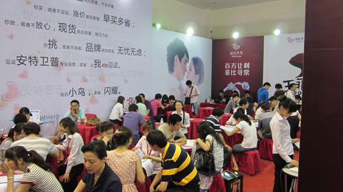 婚博会期间,我院学生负责钻石小鸟展台的礼品发放区、微博互动区和顾客引导区的工作,为到会的顾客提供帮助、发放礼品,并引导微博的互动,及时传达展会现场的第一手资料信息。在三天的实践期间,艺术设计系的同学们坚守岗位,在商业引导和咨询以及网络信息沟通过程中,体现出了良好的个人综合素质和出色的团队协作能力,向参加婚博会的社会各界展现了耿丹学子蓬勃向上的精神风貌。