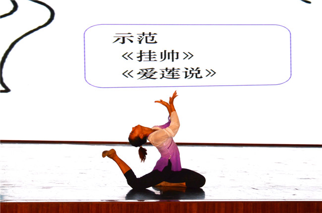 王伟老师在讲座中播放了很多经典的舞蹈视频,如千手观音、梁祝、秦王点兵等,并通过北京舞蹈学院研究生的组合表演,现场示范了“灵巧组合”“挂帅”“爱莲说”等经典舞蹈,弘扬了身韵的风采,展现了“身韵”对于中国古典舞文化身份、审美特质、语言特征以及创作风格的时代属性,全场报以阵阵热烈的掌声。